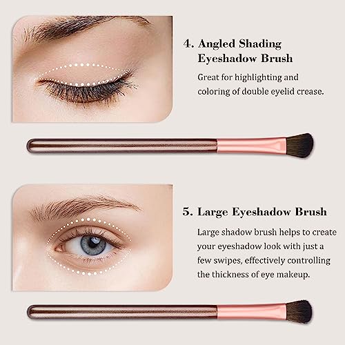 JessLab Set Pennelli Occhi, 5 Pezzi Setole Sintetiche Manico in Legno Pennelli per Trucco per Eyeliner Ombretto e Sopracciglia Kit di Raccolta Pennelli Essentials