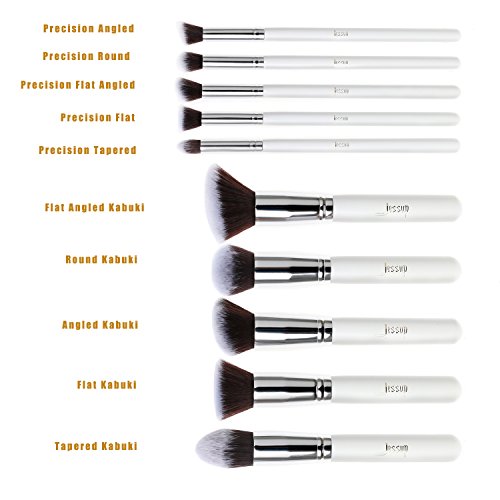Jessup - Set da nr.10 pennelli da trucco professionali Kabuki, set di accessori di bellezza di colore bianco, cod. art. T075.