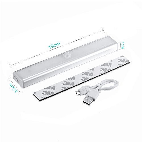 JESWELL LED del Sensore di Movimento Ricaricabile Luce con Interruttore, USB Luce Notturna Lampada da Armadio Scale Corridoio Guardaroba Cucina, 10 Luminosa LED (Confezione da 4)