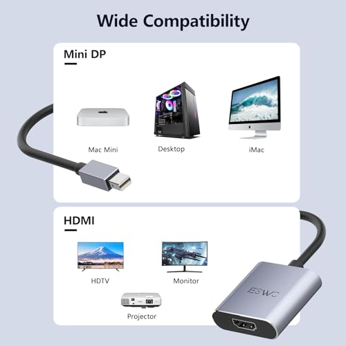 JESWO Mini Display Port to HDMI, Adattatore Thunderbolt HDMI, Supporta 4K@30 Hz, 1920 * 1200@60 Hz, per iMac, Mac Mini, Desktop, Monitor, HDTV, Proiettori, Grigio