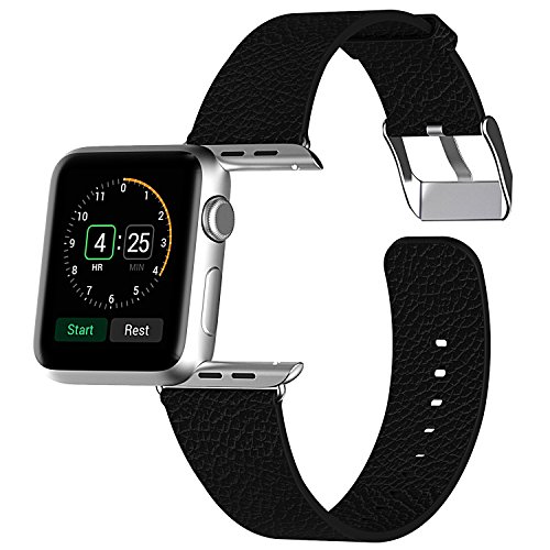 JETech Apple Watch, 42 mm Vera Pelle di Bufalo Cinghia Polso Banda Sostituzione con Fermaglio di Metallo per Apple Watch Tutti i Modelli 42 mm (Nero)