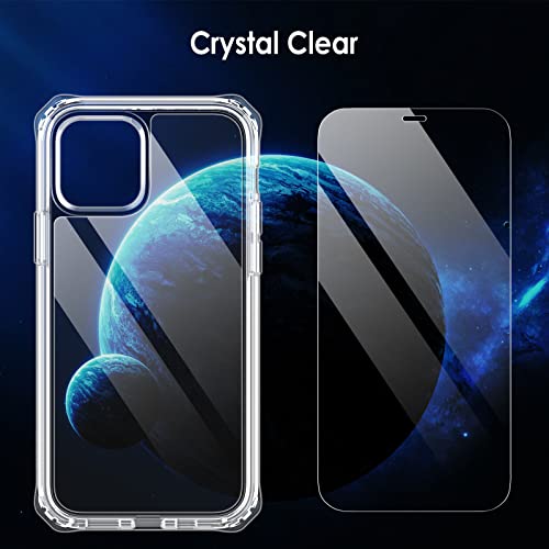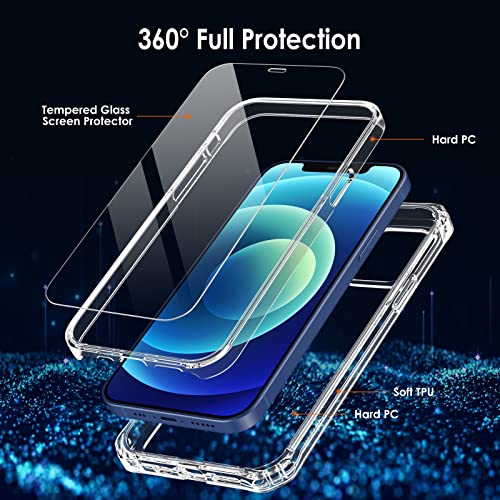 JETech Cover per iPhone 12/12 Pro 6,1 Pollici con 2 Pezzi Pellicola Protettiva in Vetro Temperato, 360 Corpo Pieno Antiurto Paraurti Custodia Protettiva Posteriore Trasparente (Chiaro)