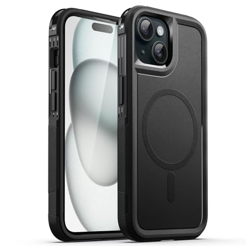 JETech Cover per iPhone 15 6,1 Pollici Compatibile con MagSafe, Impieghi Gravosi Doppio Strato Robusta Protezione, Antiurto Protettiva Resistente Cellulare Magnetica Custodia (Nero)