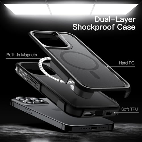 JETech Cover per iPhone 14 Pro Max 6,7 Pollici Compatibile con MagSafe, Impieghi Gravosi Doppio Strato Robusta Protezione, Antiurto Protettiva Resistente Cellulare Magnetica Custodia (Nero)