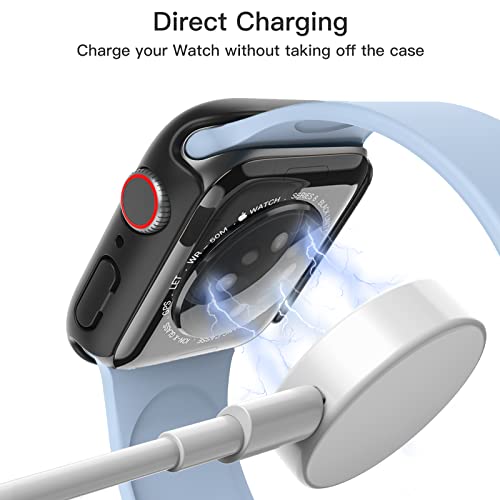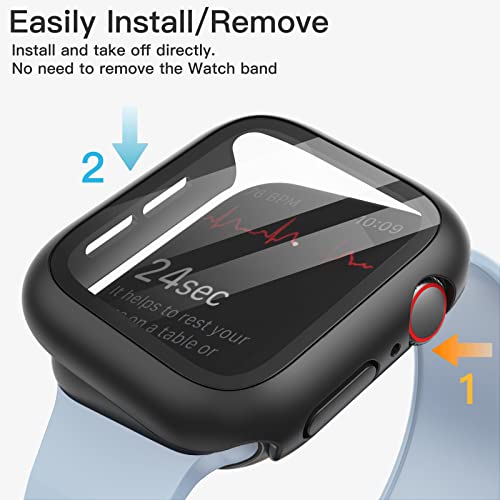 JETech Cover con Pellicola Protettiva per Apple Watch SE (2022/2020) /Series 6 5 4 44 mm, Custodia Protettiva Complessiva, Pellicola Integrata in Vetro Temperato, 2 Pezzi (Nero)