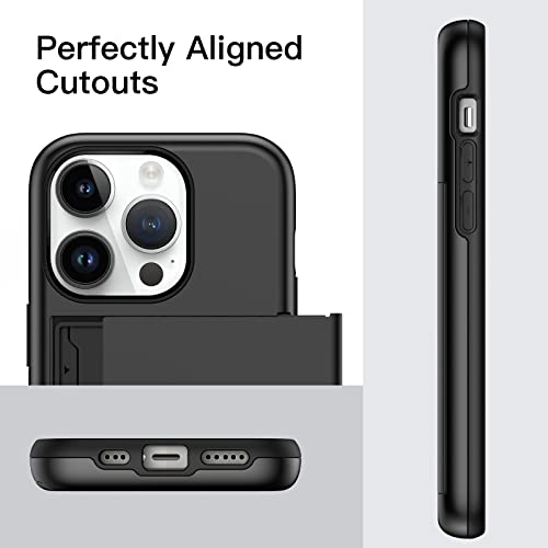 JETech Cover Portafoglio per iPhone 14 Pro 6,1 Pollici con Porta Carte, Custodia Protettiva Antiurto Doppio Strato, Slot Nascosto Scorrevole (Nero)
