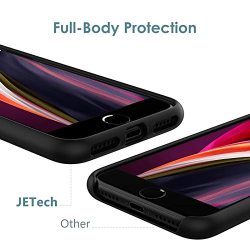 JETech Cover in Silicone Compatibile iPhone SE 2022/2020, Custodia Protettiva con Tutto Il Corpo Tocco Morbido setoso, Cover Antiurto con Fodera in Microfibra, Nero