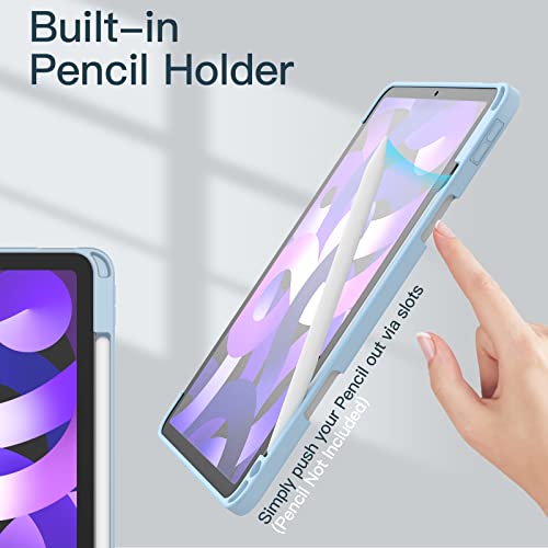 JETech Custodia per iPad Air 5/4 (10,9-Pollici, 2022/2020, 5a/4a Generazione) con Portapenne, il Involucro Posteriore Chiaro Trasparente Supporto Cover Sottile per Tablet Antiurto (Blu Chiaro)