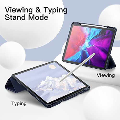JETech Custodia per iPad Pro 12,9 Pollici (Modello 2020/2018, 4a/3a Generazione) con Portapenne, Ricarica di Pencil 2a Gen, Cover Tablet Sottile con Retro in Morbido TPU (Navy)