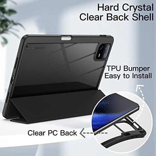 JETech Custodia per Xiaomi Mi Pad 6/Mi Pad 6 Pro (11 Pollici, Modello 2023) con Portapenne, Posteriore Chiaro Trasparente Supporto Sottile per Tablet Cover Antiurto (Nero)
