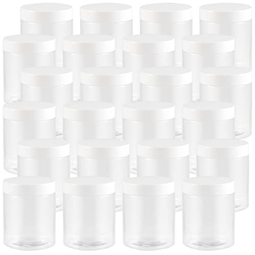 JEUIHAU Confezione da 24 barattoli in plastica trasparente da 250 ml, con coperchio, senza BPA, contenitori vuoti per slime, spezie, artigianato
