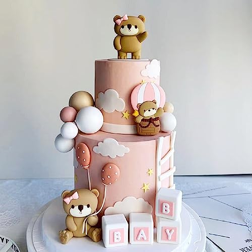 JeVenis Decorazione torta baby shower rosa Orso Teddy Cake Topper Decorazione torta rivelazione di genere Orso Baby Shower Party Supplies Decorazione orsacchiotto