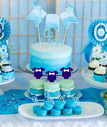 JeVenis Set di 30 decorazioni glitterate per cupcake, motivo: tutina bebè e scritta “Oh Boy”, blu, per compleanno bambino, feste nascituro, decorazione per feste