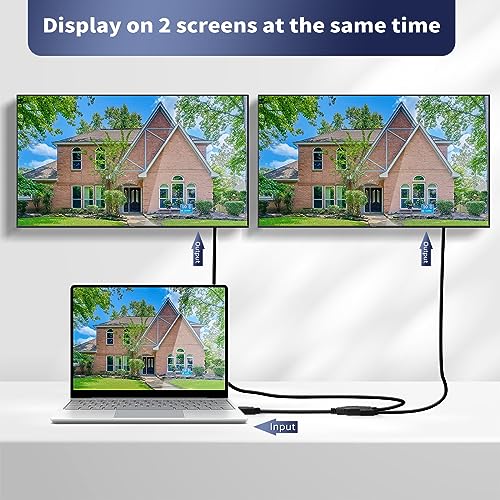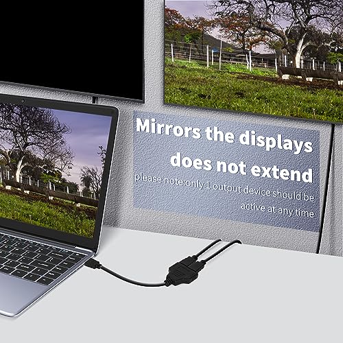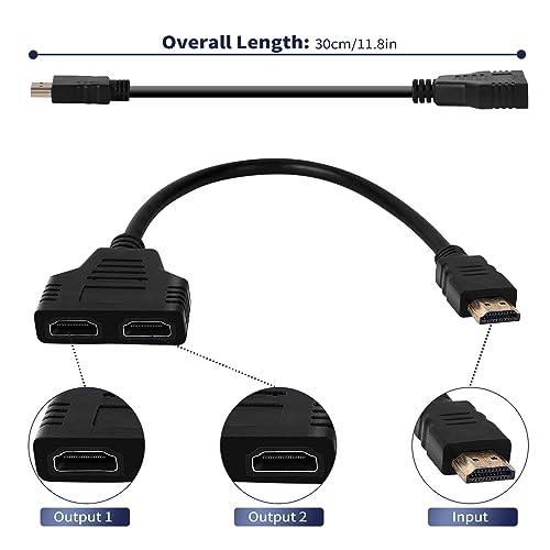 【Ampia compatibilità】L'adattatore splitter HDMI è adatto alla maggior parte dei dispositivi con interfaccia HDMI standard. Il cavo splitter HDMI 2 in 1 out è ideale per collegare un dispositivo compatibile HDMI (HD - DVD, notebook, HDTV) a due dispositivi di uscita visiva (TV, proiettore, monitor, TV LCD, display al plasma, micro-display a retroproiezione, TV digitale).