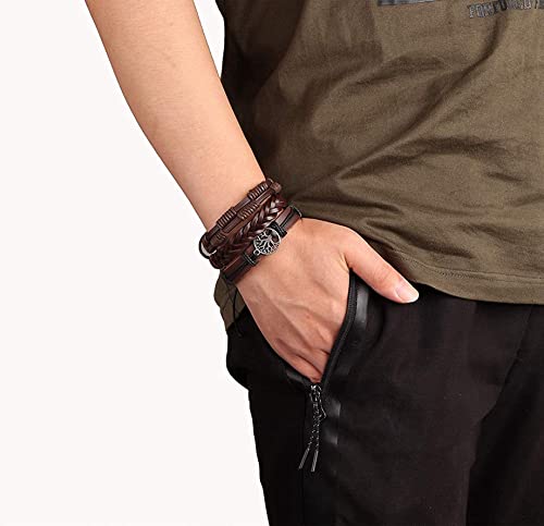 Regalo perfetto - Questo braccialetto in pelle da uomo progettato per l'uso personale è anche un regalo eccellente per la tua famiglia e i migliori amici al compleanno, San Valentino, festa del papà, giorno del Ringraziamento e Natale. Inviagli un set di braccialetti in pelle indimenticabile.