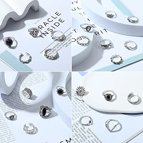 JeweBella 75/82 Pezzi Anelli Donna Vintage Anello Serpente Piume Luna Anelli Regolabili Bohemian Anelli Donna Set