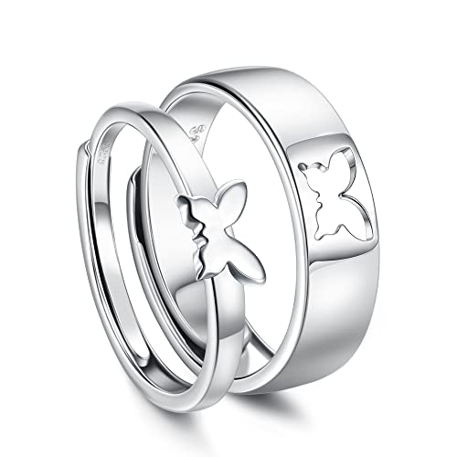 JeweBella Anelli Coppia in Argento Sterling 925 per Donna Uomo Argento/Oro Anello Cuore Anello Farfalla Anelli Fidanzamento Coppia FEDI Nuziali Regolabile