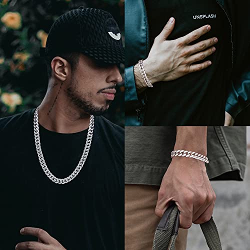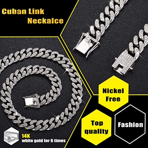 JeweBella 2PCS Collana Uomo Catena Maglia Cubana Iced out Hip Hop Miami Bracciale Uomo con Zirconi Catena Uomo 13MM Bracciale a Catena Set per Uomo Ragazzi Classici Punk Diamanti Collana Gioielli