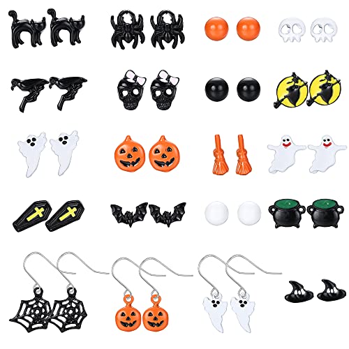 JeweBella 20 Paia Halloween Orecchini per Donna Uomo Halloween Gioielli Orecchini Gotico Ragnatela Zucca Fantasma Bat scheletro Gatto Nero Orecchini Pendenti per Halloween