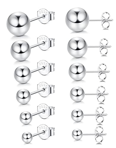♡ SET SQUISITO ♡ 6 paia di orecchini a sfera in argento sterling, la dimensione è 3-8 mm. Questi squisiti orecchini gioiello hanno una consistenza liscia e una superficie estremamente lucida. Sono adatti per donne o uomini. Può soddisfare le tue esigenze di scelta diversificate e la vita quotidiana in varie occasioni, adatto per abbigliamento casual o da sera.