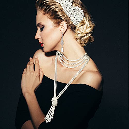 【Materiale di Alta Qualità】Questo Parure di gioielli Perle per flapper art deco è realizzato con perle finte e metallo di alta qualità, peso adeguato, molto elegante, classico, comodo da indossare, le perle sono infilate insieme con una robusta corda a maglie, non si rompono, possono essere indossate per un a lungo