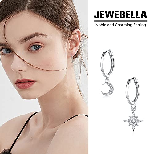 JeweBella Orecchini per Donna in Argento Sterling 925 Orecchini a Cerchio Orecchini Pendenti con Ciondolo Stelle e Luna Orecchino Piccoli Zirconi Huggies con Cartilagine Orecchini Regalo per Donna