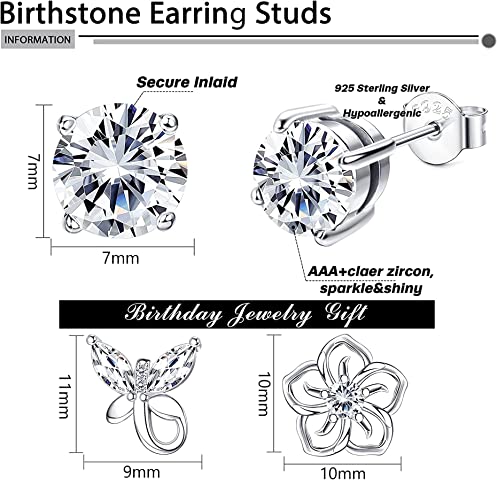 JeweBella 3 Paia Orecchini a perno in argento 925 con pietra di nascita per ragazze e donne