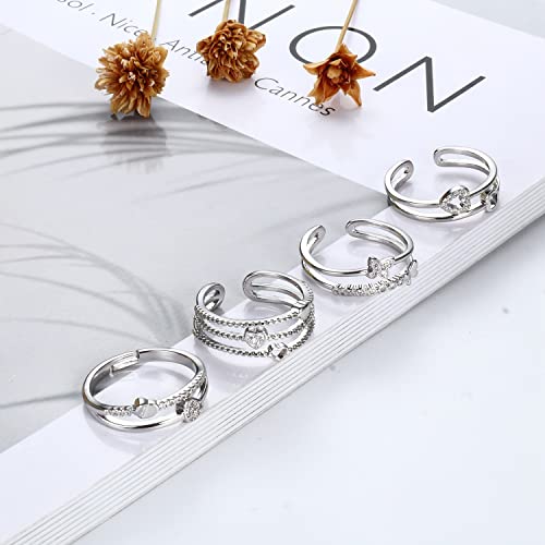 Set Anelli Donna: un ordine otterrai 4 pezzi anelli donna agento, incluso 1 anello farfalla, 3 pezzi anelli cuore. Gli anelli in zirconia cubica possono essere usati come anelli per nocche, anelli per il pollice, anelli midi, anello impilabile, anello per le dita dei piedi, perfetti per feste, matrimoni, lavoro, vita quotidiana, ecc