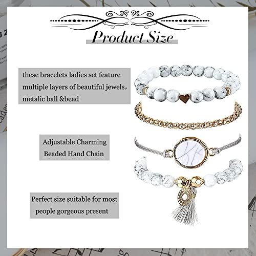 ✨BRACCIALE DONNA SET✨ Il braccialetto multistrato da 19 pezzi ha diversi elementi di fascino tra cui scegliere. Bracciale nappa, bracciale in marmo bianco, collana di perle fatte a mano a forma di cuore, bracciale a catena allungata, regolabile, adatto per donne e ragazze, puoi mettere insieme la tua combinazione di gioielli preferita.