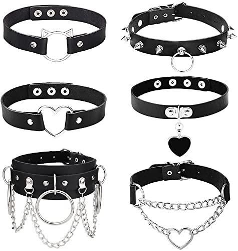 JeweBella 6/8 Pezzi Girocollo in Pelle Gotica Collana Donna Pelle Nera Collana Choker Vintage Punk Rock Collana Catena Clavicola Punk Girocollo Cuore Girocollo Gothic Regolabile Halloween Cosplay