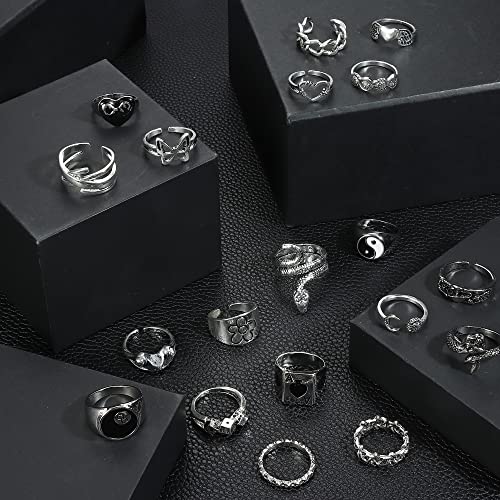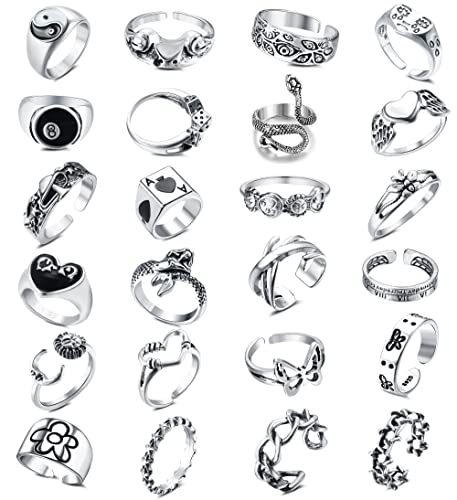 JeweBella 24 Pezzi Vintage Punk Gotico Anelli per Donna Uomo Regolabile Aperti Anello Serpente Rana Farfalla Anello Y2k Anello Vintage Impilabili Anelli Gioielli Regalo