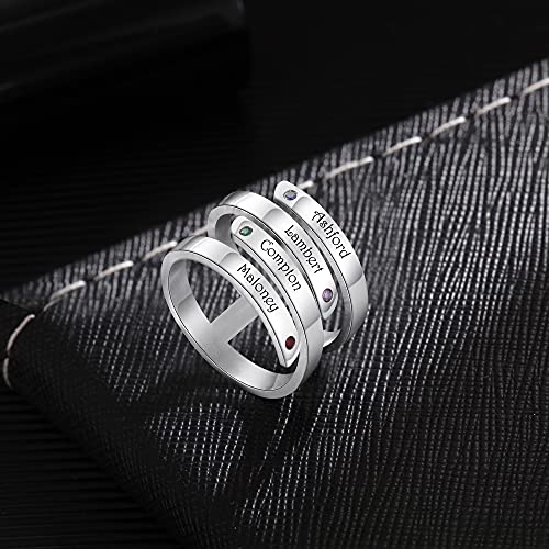 Jeweidea Anello Personalizzato Twist con 2/3/4 Nomi Inciso Pietre Personalizzate Anello Promessa per Donna Uomo Anelli Regolabili per Festa della Mamma San Valentino Compleanno (4 nomi)
