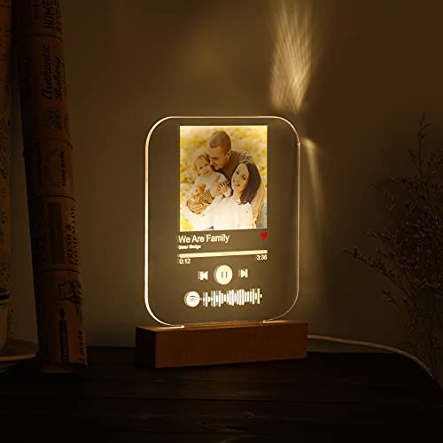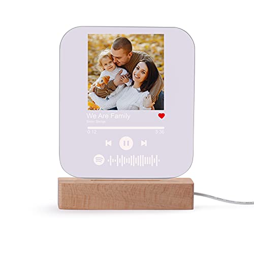 Jewel Luci Notturne Foto Spotify Personalizzate con Foto Musica Incisione Canzone Piastra Scansionabile Spotify Vetro Acrilico Lampada da Comodino Regalo per Donne Fidanzato San Valentino (Bianca)