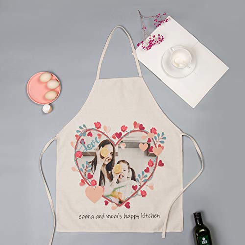 ☛ [Design personalizzato] ☛: Design di foto e testo. è impermeabile, resistente all'olio, non scolorisce, i grembiuli da cucina per donna sono in cotone e lino e sono versatili;