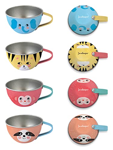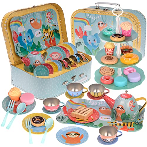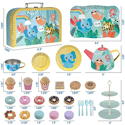 Jewelkeeper Servizio da tè da 42 pezzi per ragazzi e ragazze, in peltro per bambini + cibo e valigetta per il trasporto, design giungla