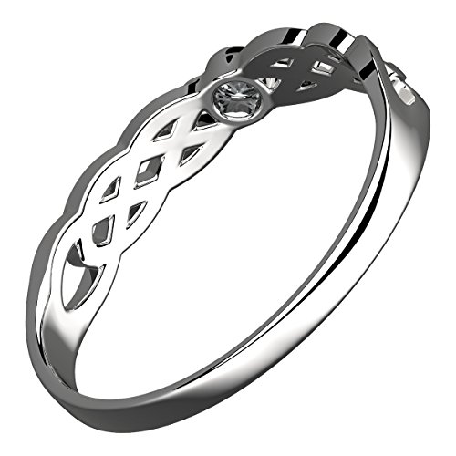 GWG Jewellery Anello Argento Sterling Nodo Celtico e Pietra Bianca Taglio Tondo - 5 in Confezione Regalo per Donne