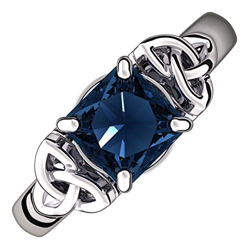 GWG Jewellery Anello Argento Sterling Grande Pietra in Quadrato Blu Zaffiro Affiancata da Nodi Celtici - 6 in Confezione Regalo per Donne
