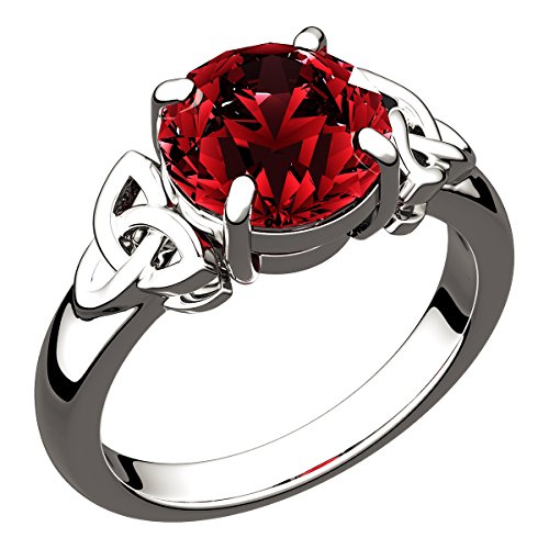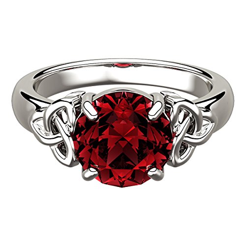 GWG Jewellery Anello Argento Sterling Grande Pietra in Rosso Rubino Affiancata da Nodi Celtici - 7 in Confezione Regalo per Donne