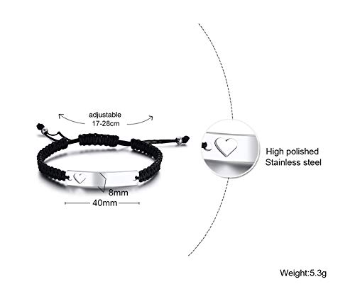 PJ JEWELLERY - Braccialetto in acciaio inox e corda intrecciata, regolabile, per coppie e per lui e per lei e Acciaio inossidabile, cod. P-BR-664BS-BR-664BB-COUPLE-005