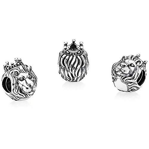 DIAN Jewellery - Ciondolo a Forma di re Leone della Giungla in Argento Sterling 925 - Compatibile con Braccialetti Ciondoli Europei - Bracciale Collana Charms
