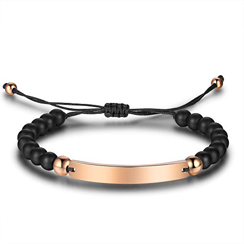 Jewelora Bracciale da uomo Bracciali personalizzati con perline Bracciale da partner con bracciale inciso per te e lui Bracciale personalizzabile (Black&rosegold)
