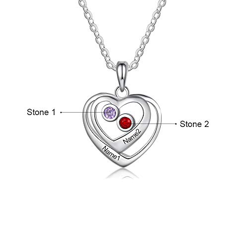 Jewelora Catena personalizzata con 2-3 nomi da donna con ciondolo a cuore Collane in argento sterling 925 stimolato 2 gioielli da donna con pietra del parto per San Valentino (#3 2 names)