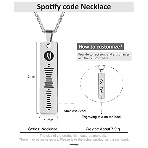 Jewelora Scansionabile Personalizzare Collana con Codice Spotify Music Acciaio inossidabile testo canzone pendente regali per uomini e donne (Argento)