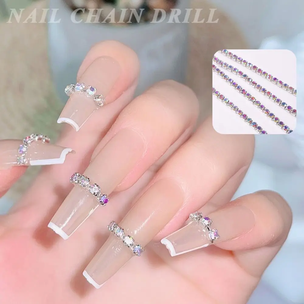 Jewelry Accessory Metal Chain DIY Manicure Nail Art Decorations Nail Rhinestone Peral Chain Shiny Nail Ornament Silver