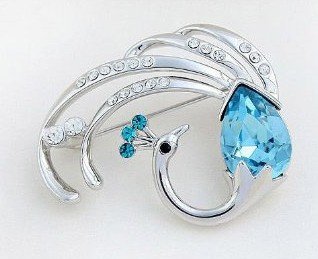 Lily Jewelry Aqua blu cristallo austriaco Swarovski Elements Peacock spilla per le donne
