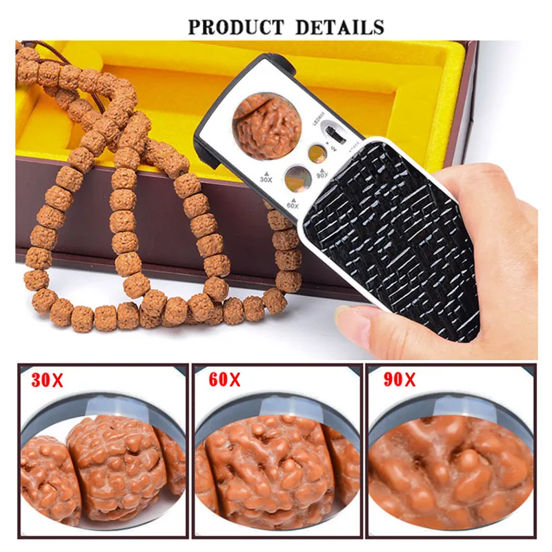 Jewelry Loupes 30X 60X 90X Illuminated Jewelry Magnifier Pocket Folding Magnifier Jewelry Lens LED Light Eye Magnifier