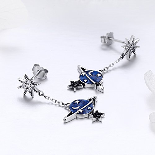 Lily Jewelry Mysterious Planet - Orecchini pendenti in argento Sterling 925, smaltati, colore: Blu