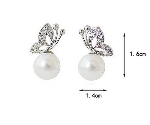 Lily Jewelry - Orecchini da donna a forma di farfalla, con cristalli Swarovski Elements e Argento, colore: Argento/Perla, cod. Lily-Butterfly-3