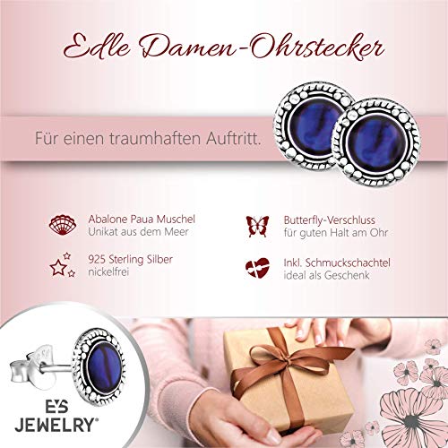 EYS Jewelry, orecchini da donna rotondi, in argento Sterling 925 ossidato, 8 mm e Placcato oro, colore: Porpora Viola, cod. EYS-30902_Abalone_Purple