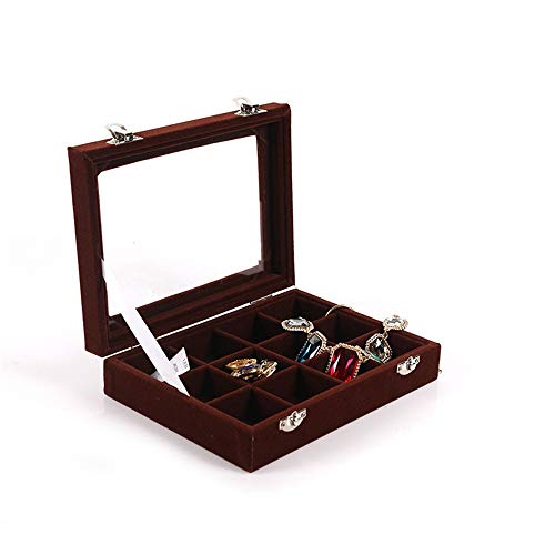 ZAGO Jewelry Box di stoccaggio Vetrina di visualizzazione di stoccaggio Anelli Orecchini del Braccialetto di Velluto Coperchio Trasparente 12 Griglia monili Vassoio Gioielleria Mini Travel Scatole